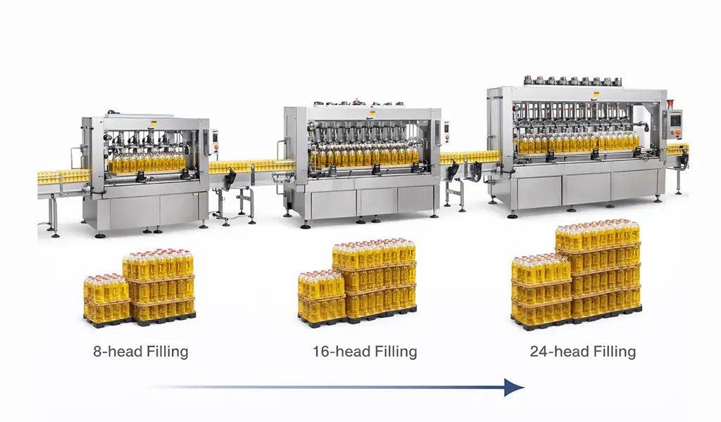 To meet different bottle sizes and output requirements, we offer multiple edible oil filling line configurations. By adjusting the number of filling heads, an optimal balance between efficiency, investment cost, and line flexibility is achieved.