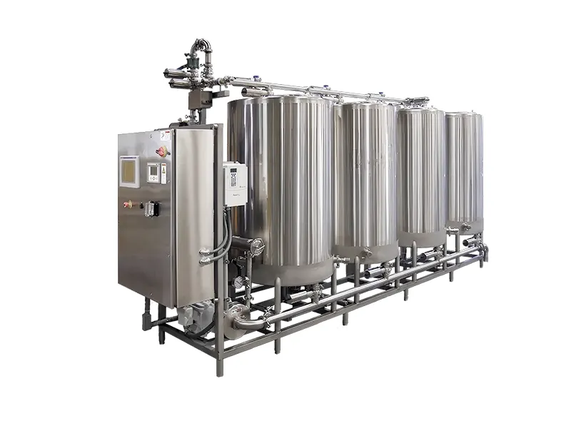 The CIP system cleans storage tanks, pipes, and filling machines, with configurable tank numbers (3-5) and cleaning pressure paths based on the juice production line’s capacity.